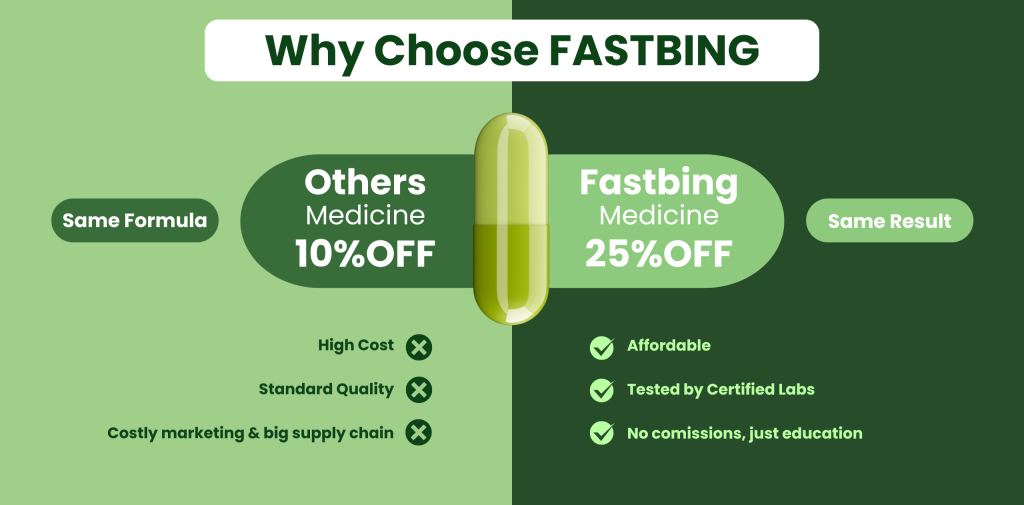 Fastbing is your reliable and legit online pharmacy, redefining the online medicine delivery experience. We partner with trusted local pharmacies to ensure your health needs are met with unparalleled speed and convenience. Whether you need to order medicine online without a prescription for over-the-counter items or buy generic medicine online at a low cost, our platform simplifies the process. We are committed to being the best medicine delivery app, ensuring your medicines are 100% authentic and delivered right to your doorstep.